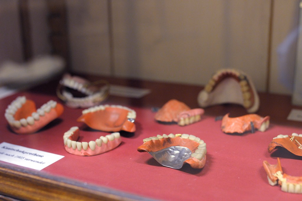 Kirchner ist selbst praktizierender Zahnarzt und Kustos des Museums. Und zwar jener mit der längsten Amtszeit. Vor dreißig Jahren hat er «das Museum aus dem Dornröschenschlaf geweckt» und führt seither durch die engbemessenen Räumlichkeiten, in denen dicht an dicht die Sammlungsstücke ausgestellt sind: Behandlungsstühle aller Generationen, Prothesen für Reiche (aus Elfenbein) und solche für Arme (aus Kautschuk), kunstvoll gefertigte Zahnstocher, riesige Gebissmodelle und in Wachs gemodelte Zahnkrankheiten, Tiergebisse, Karikaturen vom Zahnziehen und eine Menge Bohrer, angesichts derer man unwillkürlich die Zähne zusammenbeißt. Bevor der Bohrer mit Elektrizität betrieben wurde, kannte man, ähnlich der Nähmaschine, den Tretbohrer. Weil der Schmerz beim Bohren der Arbeit hinderlich war, war Abhilfe dringend nötig: In den 1840er Jahren bemerkte der Zahnarzt Horace Wells aus Hartford, Connecticut, die schmerzstillende Wirkung des Lachgases, als er einen mit Lachgas zugedröhnten Mann beobachtete, der sich eine Verletzung zuzog, ohne ihr Beachtung zu schenken. Die Betäubung war erfunden! Leider nicht zu Wells’ Ruhm und Ehr, denn der irrte sich, als er seine Entdeckung der gespannten Fachwelt vorführen wollte, in der Dosierung – sein Vorführpatient krümmte sich vor Schmerz.